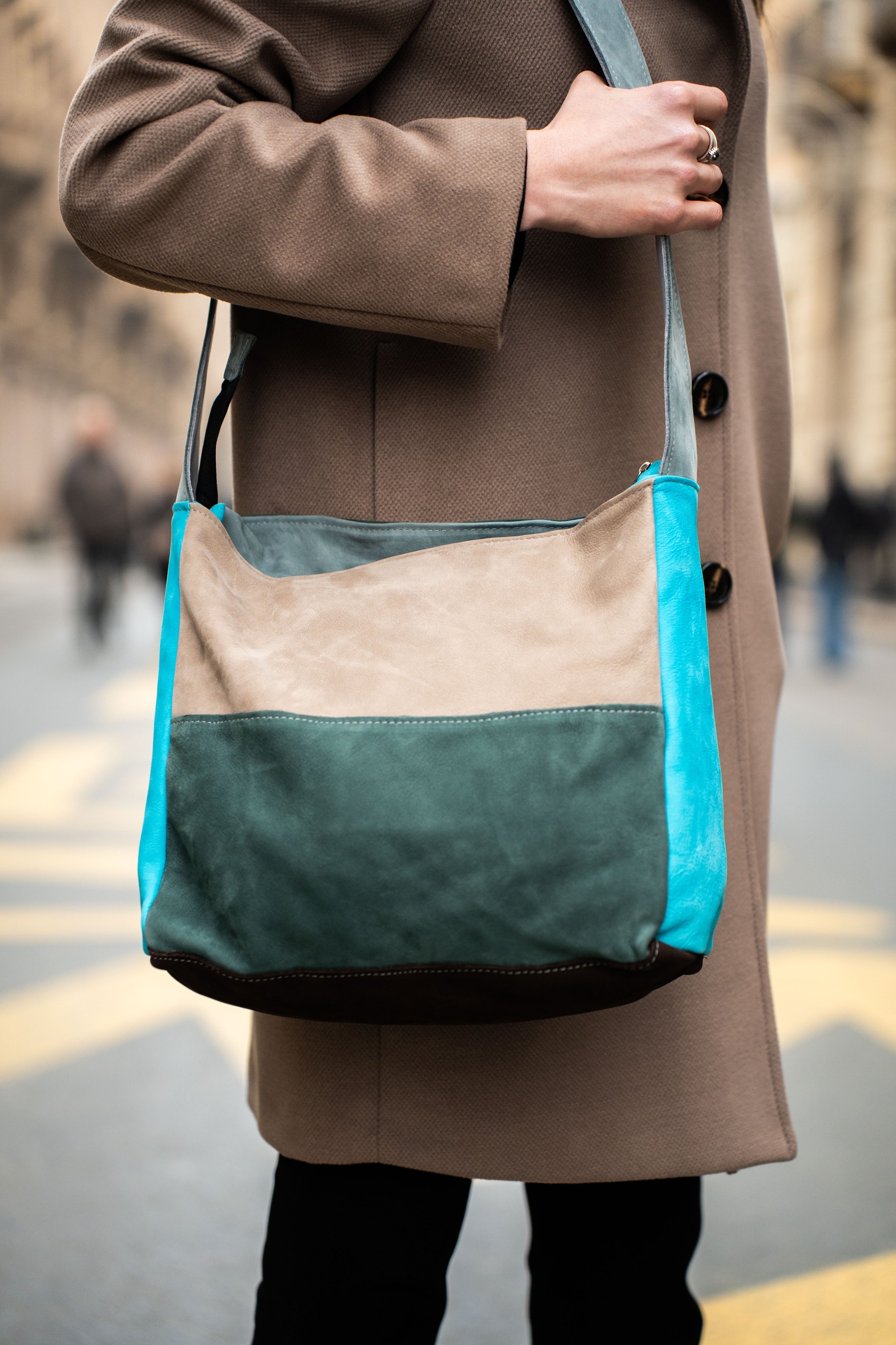Scopri la versatilità di questa borsa a spalla che si trasforma in zaino. Realizzata con cura in morbida pelle di nabuk con un design intelligente questa borsa risulta molto comoda e capiente. Internamente si trova un ulteriore tasca con chiusura con zip Particolare la cerniera che , se indossata come zaino, rimane all’interno dove poggia la schiena