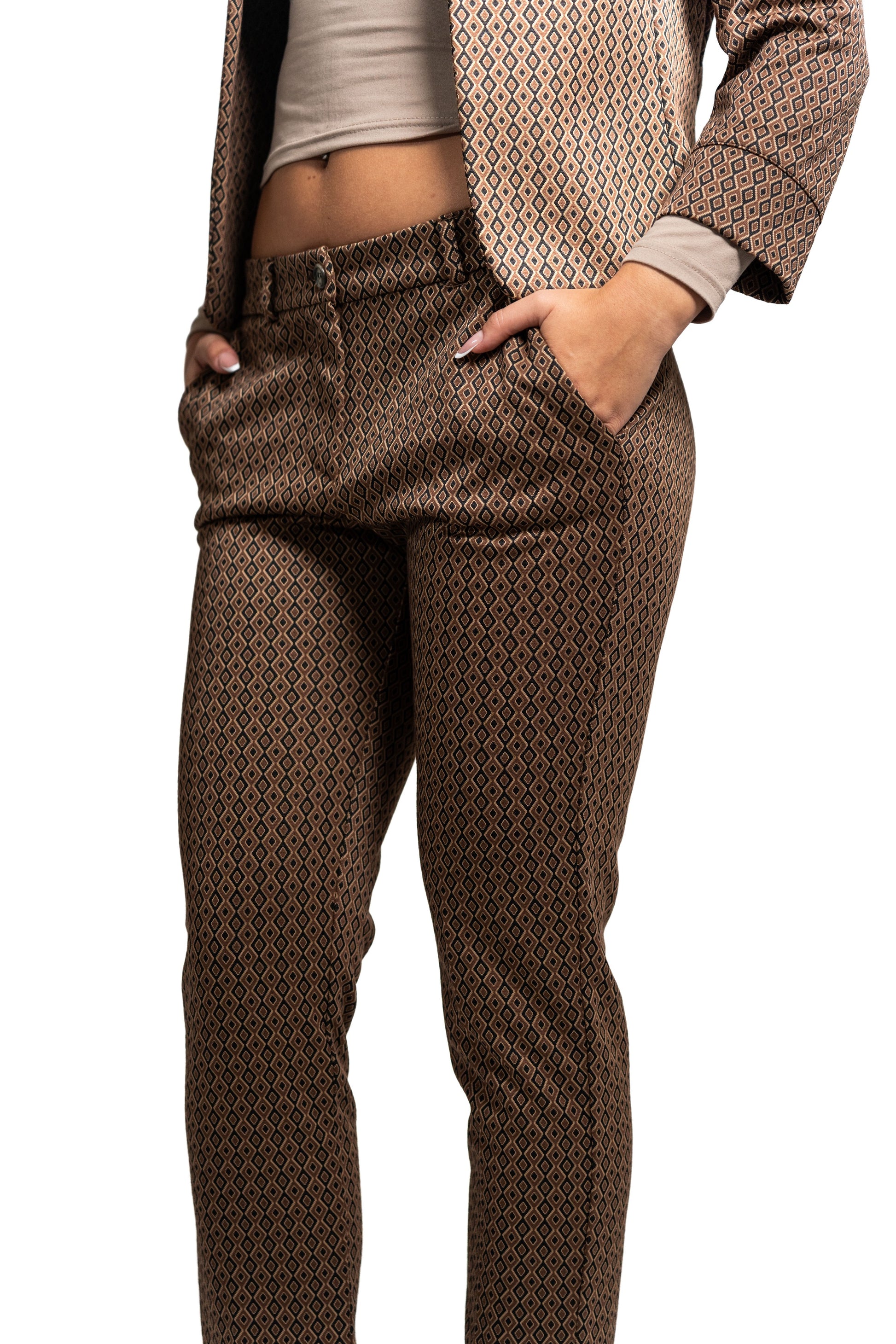 Tailleur in fantasia composto da giacchino corto con manica a 3/4 e pantalone a sigaretta tessuto elasticizzato